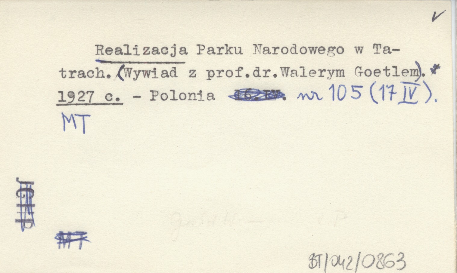 Realizacja Parku Narodowego w Tatrach. (Wywiad z prof.dr.Walerym Goetlem). 1927 c