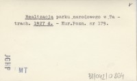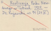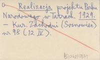 Realizacja Parku Narodowego w Tatrach. 1929