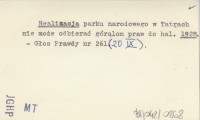 Realizacja Parku Narodowego w Tatrach. 1930