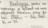 Realizacja parku narodowego w Tatrach nie może odbierać Góralom praw do hal. 1928...