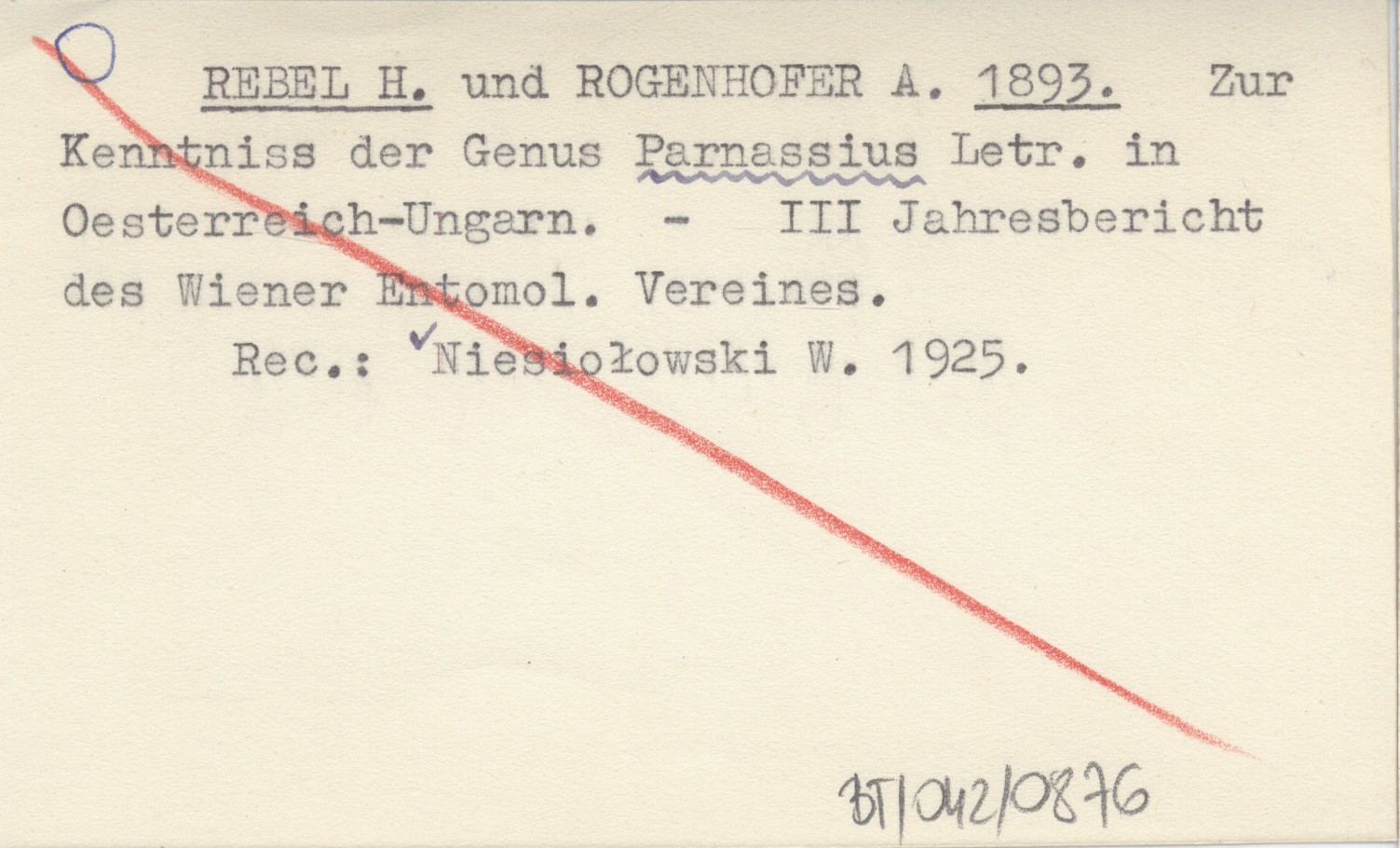 REBEL H. ROGENHOFER, A. ; 1893 Zur Kenntniss der Genus Parnassius Letr. in Oesterreich-Ungarn.