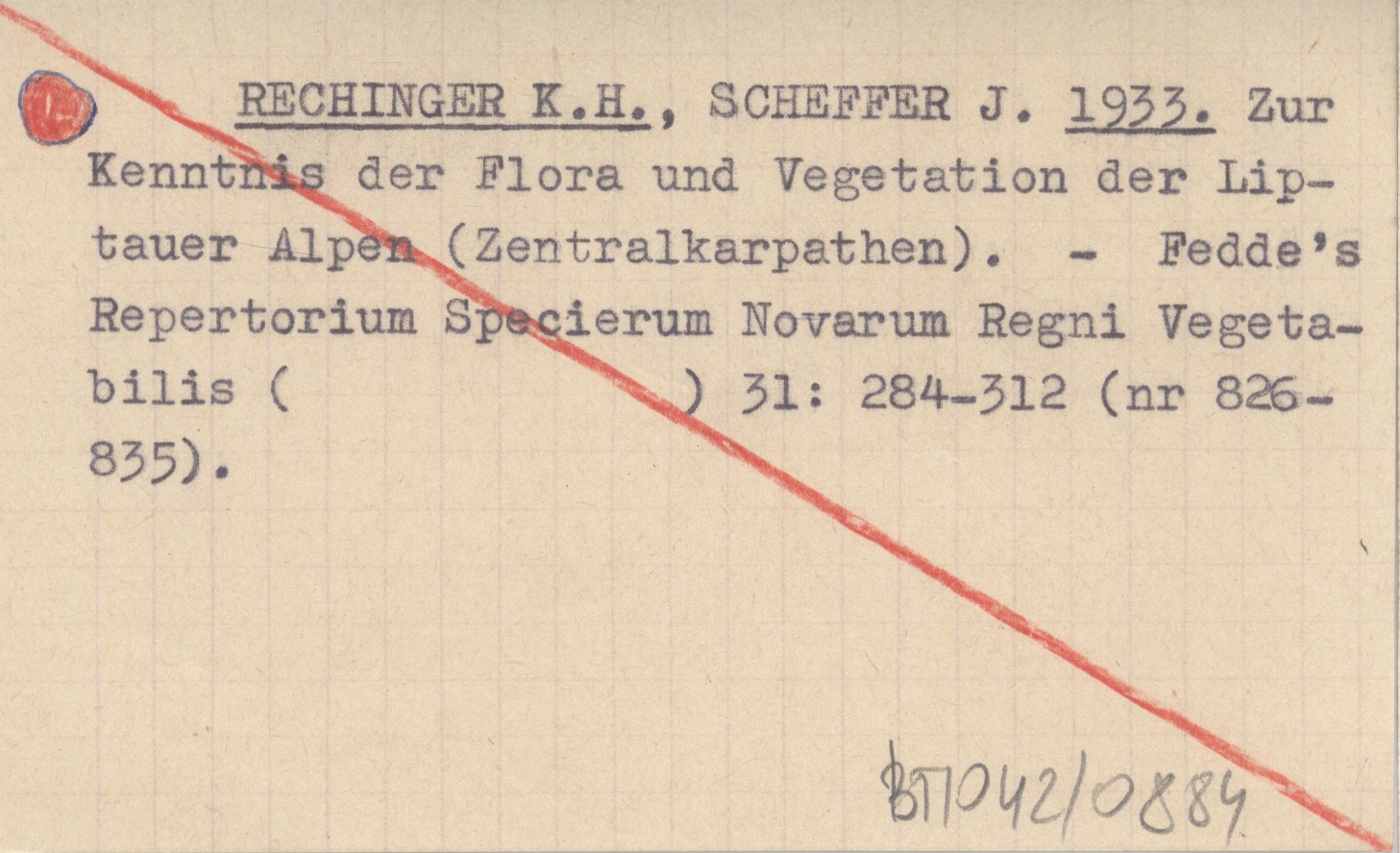 RECHINGER K. H. SCHEFFER, J. ; 1933 Zur Kenntnis der Flora und Vegetation der Liptauer Alpen (Zentralkarpathen).