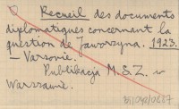 Recueil des documents diplomatiques concernant la question de Jaworzyna. 1923