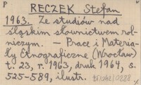 RECZEK Stefan 1963 Ze studiów nad śląskim słownictwem rolniczym.