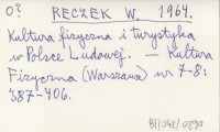 RECZEK W. 1964 Kultura fizyczna i turystyka w Polsce Ludowej.