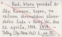 Reč, ktoru povedal dr Ján Rumann, župan, na valnom shromaždeni slovenského ludu v Novej Vsi, dna 22. aprila, 1919. 1919