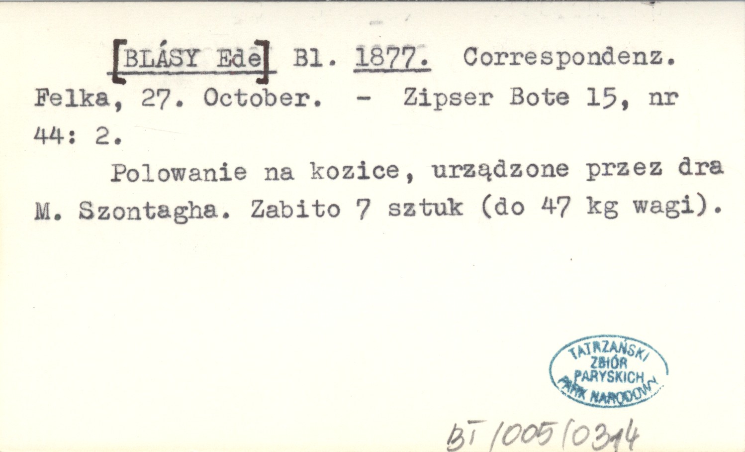 Zipser Bote, 15, nr 44: 2. Polowanie na kozice, urządzone przez dra M. Szontagha. Zabito 7 sztuk (do 47 kg wagi).
