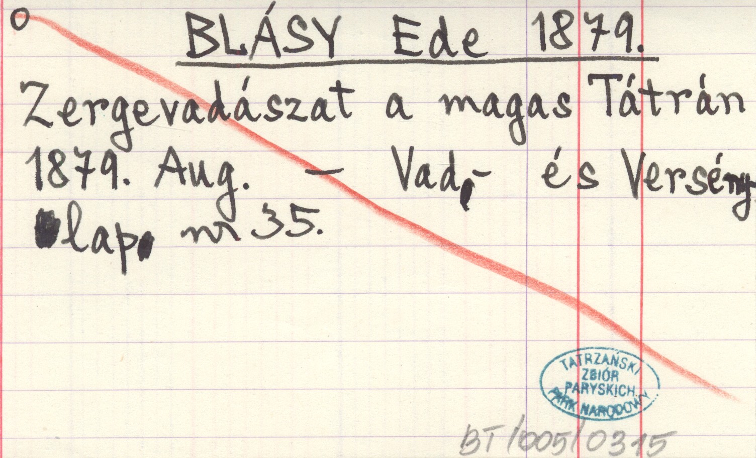 BLÁSY Ede 1879 Zergevadászat a magas Tátrán 1879. Aug.