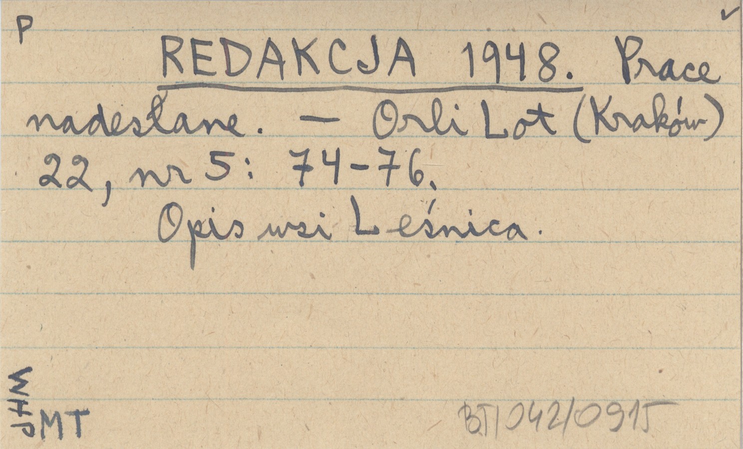 Orli Lot (Kraków) , 22, nr 5: 74-76. Opis wsi Leśnica.