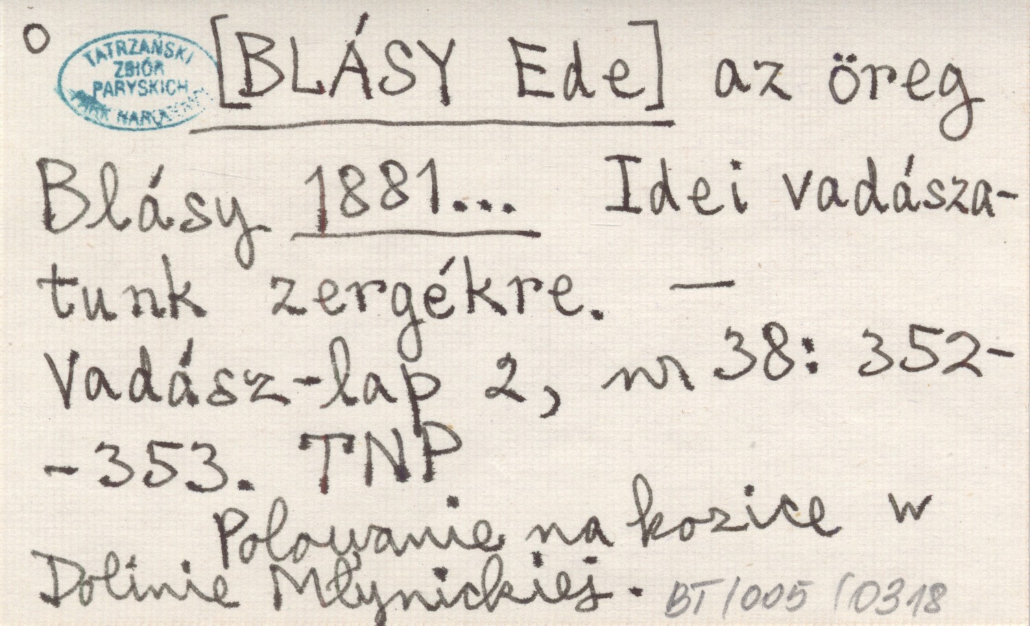 az öreg Blásy [BLÁSY Ede] 1881... Idei vadászatunk zergékre.
