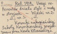 Ref. 1919 Uwagi referentów działu style i mody w strojach.