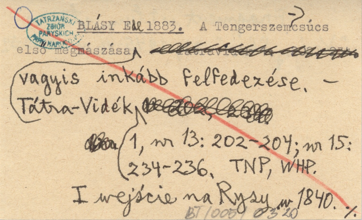 BLÁSY Ede 1883 A Tengerszem-csúcs elsõ megmászása vagyis inkább felfedezése.