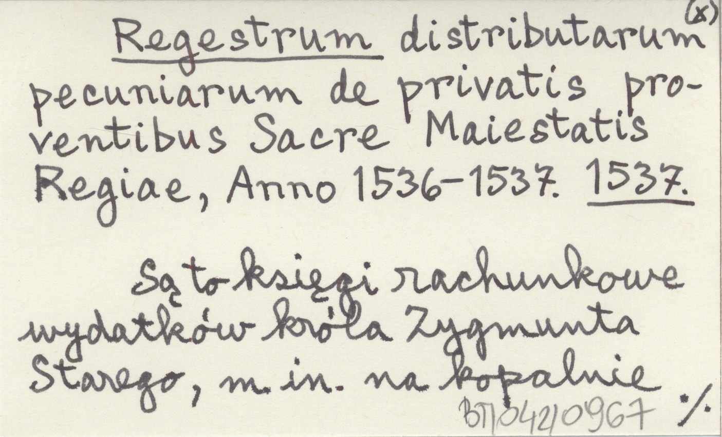Regestrum distributarum pecuniarum de privatis proventibus Sacre Maiestatis Regiae, Anno 1536-1537. 1537