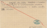 BLATTNÝ Ct. 1930 Poznámky o bramborech pěstováných ve vysokohorských polohách v republice Československé.