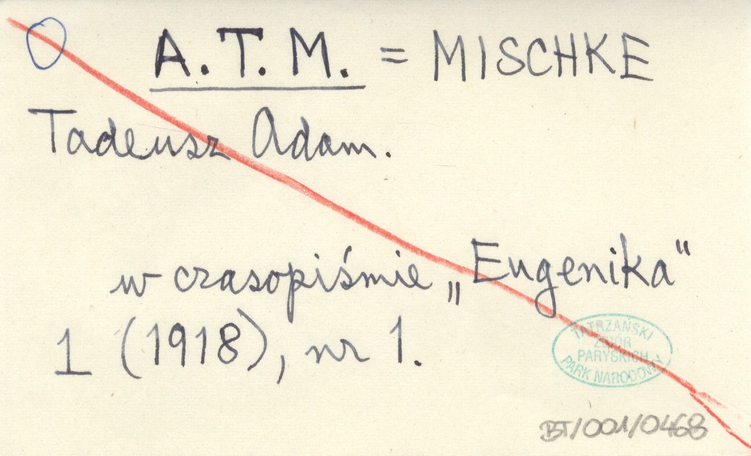 A. T. M. MISCHKE Tadeusz Adam Eugenika 1 (1918), nr 1.