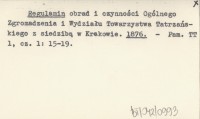 Regulamin obrad i czynności Ogólnego Zgromadzenia i Wydziału Towarzystwa Tatrzańskiego z siedzibą w Krakowie. 1876