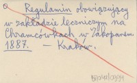 Regulamin obowiązujący w zakładzie leczniczym na Chramcówkach w Zakopanem. 1887