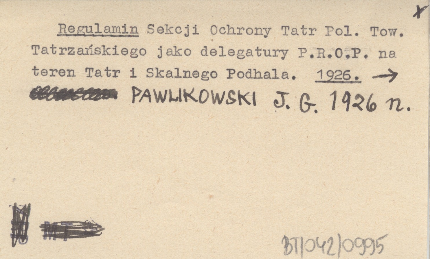 Regulamin Sekcji Ochrony Tatr Pol. Tow. Tatrzańskiego jako delegatury P.R.O.P. na teren Tatr i Skalnego Podhala. 1926