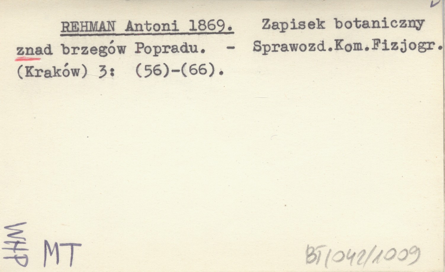 REHMAN Antoni 1869 Zapisek botaniczny znad brzegów Popradu.