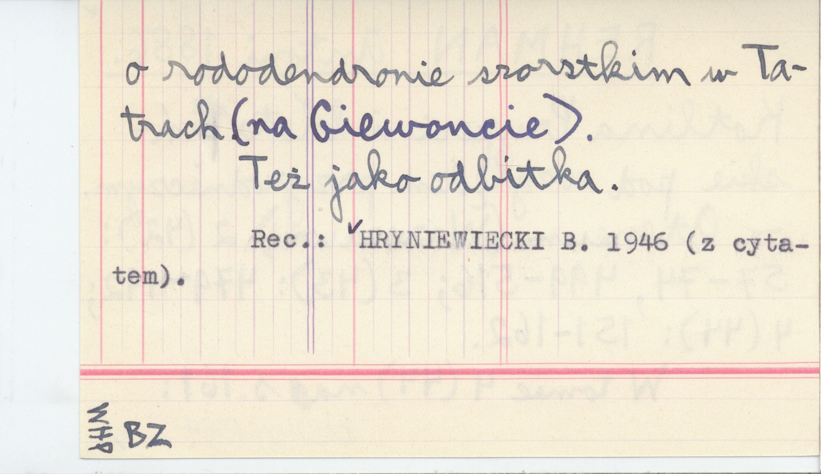 Ateneum (Warszawa) , 2 (42): 57-74, 499-516 ; 3 (43): 479-492 ; 4 (44): 151-162. W tomie 4 (44) na s. 161: o rododendronie szorstkim w Tatrach (na Giewoncie). Też jako odbitka. REC: HRYNIEWIECKI B. 1946 (z cytatem)