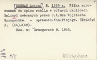 R. [REHMAN Antoni] 1869 a Kilka sprostowań do spisu roślin w różnych okolicach Galicyi zebranych przez J.X.Dra Wojciecha Grzegorzka.
