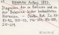 REHMAN Antoni 1873 Diagnosen der in Galizien und in der Bukovina bisher beobachteten Hieracien.
