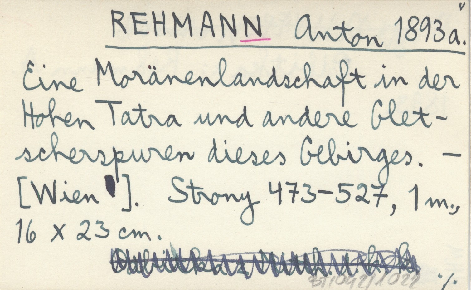 REHMANN Anton 1893 a Eine Moränenlandschaft in der Hohen Tatra und andere Gletscherspuren dieses Gebirges.