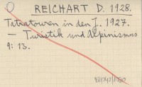 REICHART D. 1927 Tatratouren in den J. 1924-26.