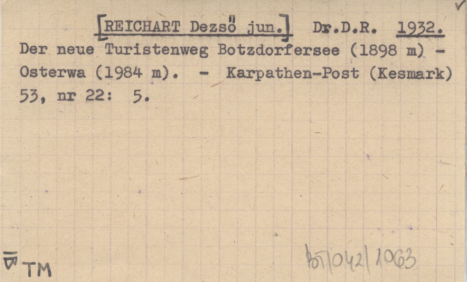 Dr.D.R. [REICHART Dezső jun.] 1932 Der neue Turistenweg Botzdorfersee (1898 m) - Osterwa (1984 m).