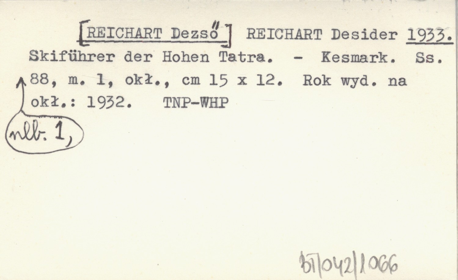 REICHART Desider [REICHART Dezső] 1933 Skiführer der Hohen Tatra.