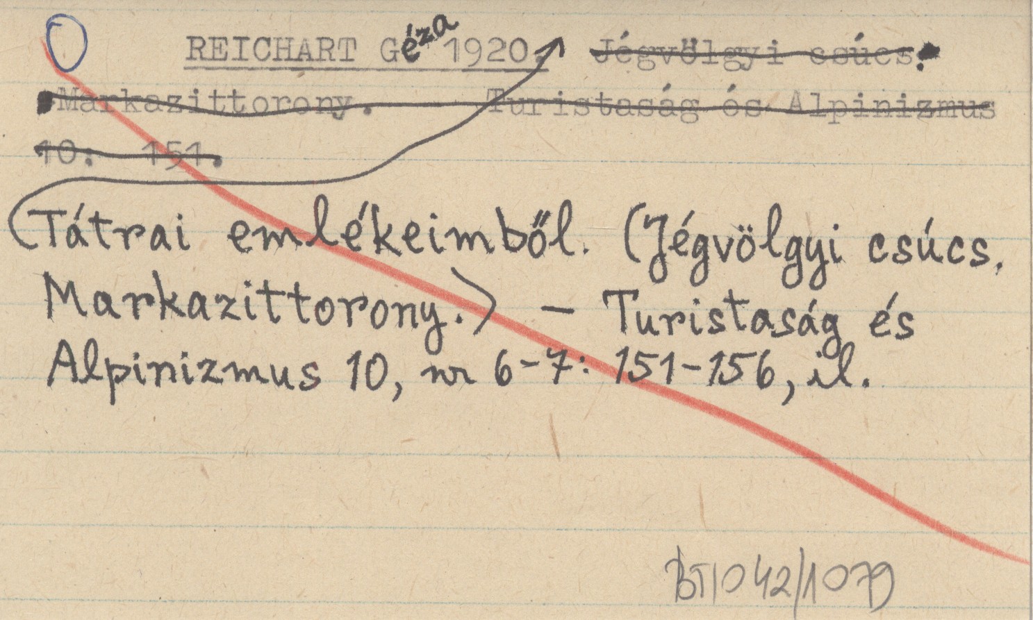 REICHART Géza 1920 Tátrai emlékeimből. (Jégvölgyi csúcs. Markazittorony).
