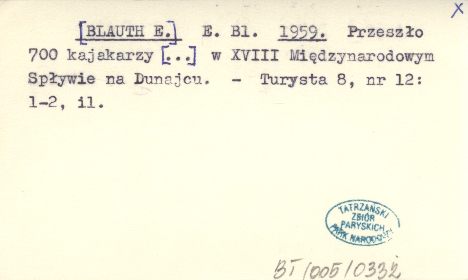 E. Bl. [BLAUTH E.] 1959 Przeszło 700 kajakarzy [...] w XVIII Międzynarodowym Spływie na Dunajcu.