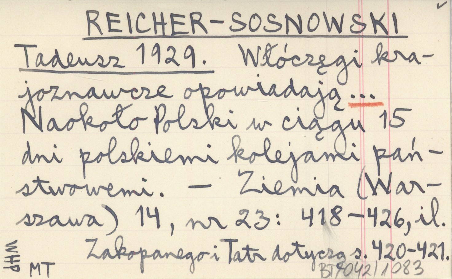 REICHER-SOSNOWSKI Tadeusz 1929 Włóczęgi krajoznawcze opowiadają ... Naokoło Polski w ciągu 15 dni polskiemi kolejami państwowemi.