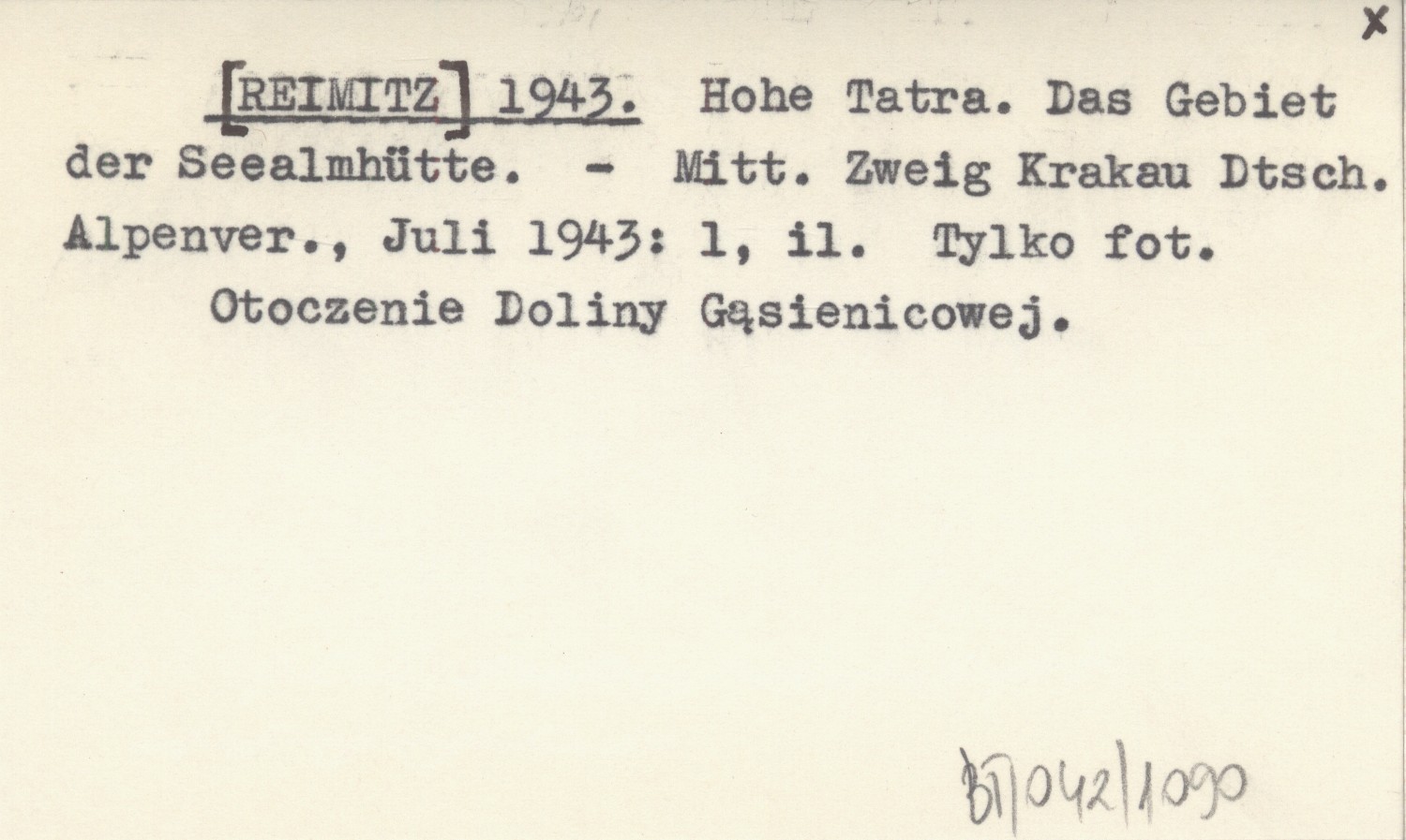 Mitt. Zweig Krakau Dtsch. Alpenver., Juli 1943: 1, il. Tylko fot. Otoczenie Doliny Gąsienicowej.