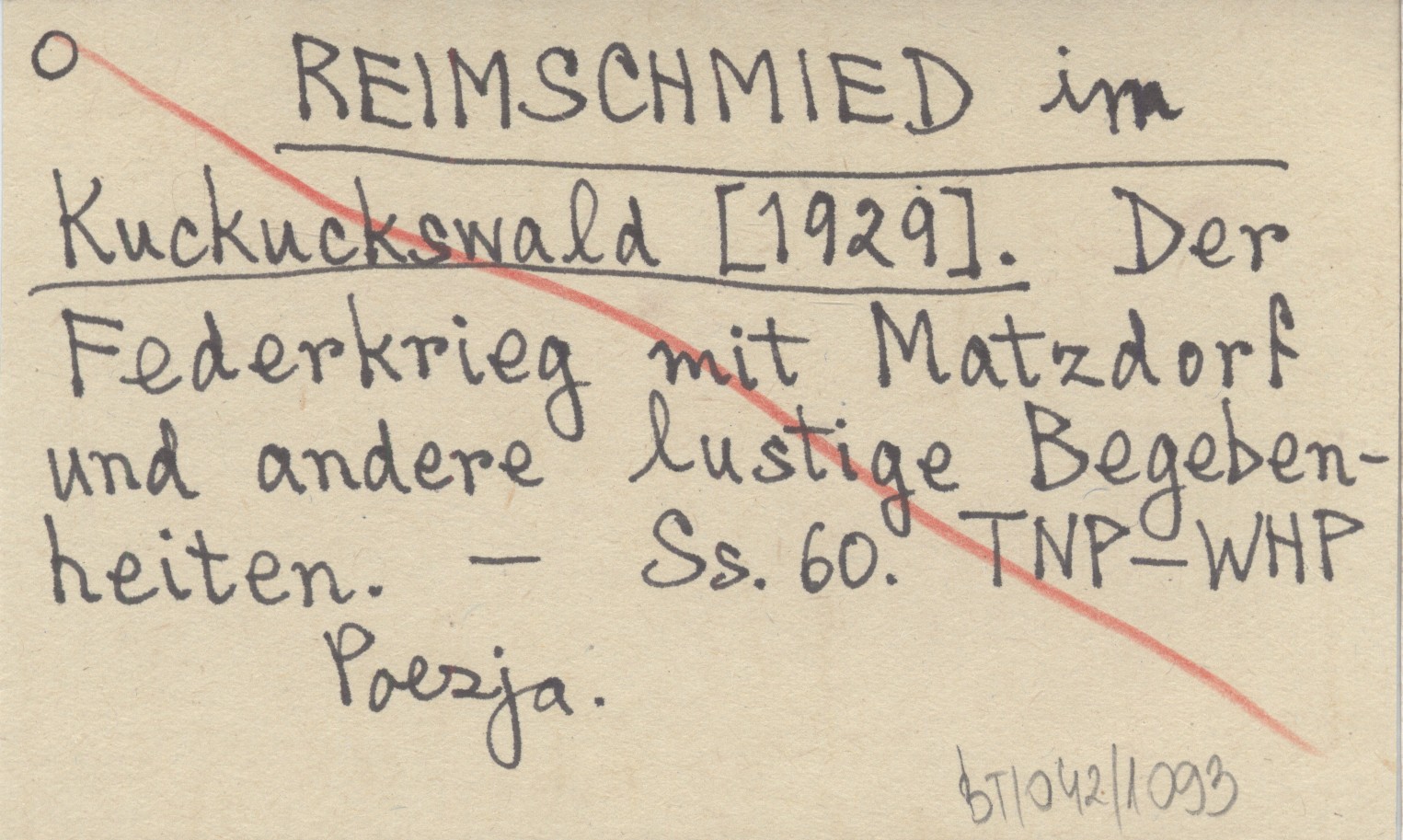 REIMSCHMIED in Kuckuckswald [1929] Der Federkrieg mit Matzdorf und andere lustige Begebenheiten.