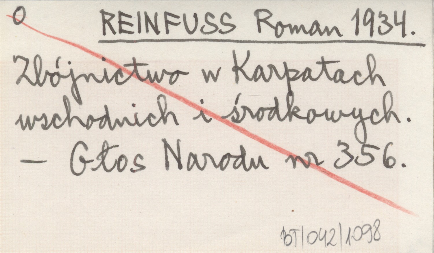 REINFUSS Roman 1934 Zbójnictwo w Karpatach wschodnich i środkowych.