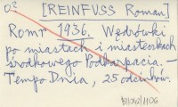 Romr [REINFUSS Roman] 1936 Wędrówki po miastach i miasteczkach środkowego Podkarpacia.