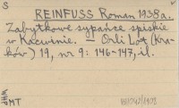REINFUSS Roman 1938 a Zabytkowe sypańce spiskie w Kocwinie.