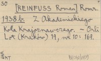 Romr. [REINFUSS Roman] 1938 b Z Akademickiego Koła Krajoznawczego.