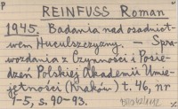 REINFUSS Roman 1945 Badania nad osadnictwem Huculszczyzny.