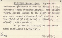 REINFUSS Roman 1946 Pogranicze krakowsko-góralskie w świetle dawnych i najnowszych badań etnograficznych. The Kraków-Góral Border Region in the light of former and most recent ethnographical studies.