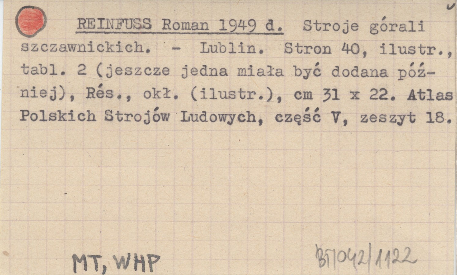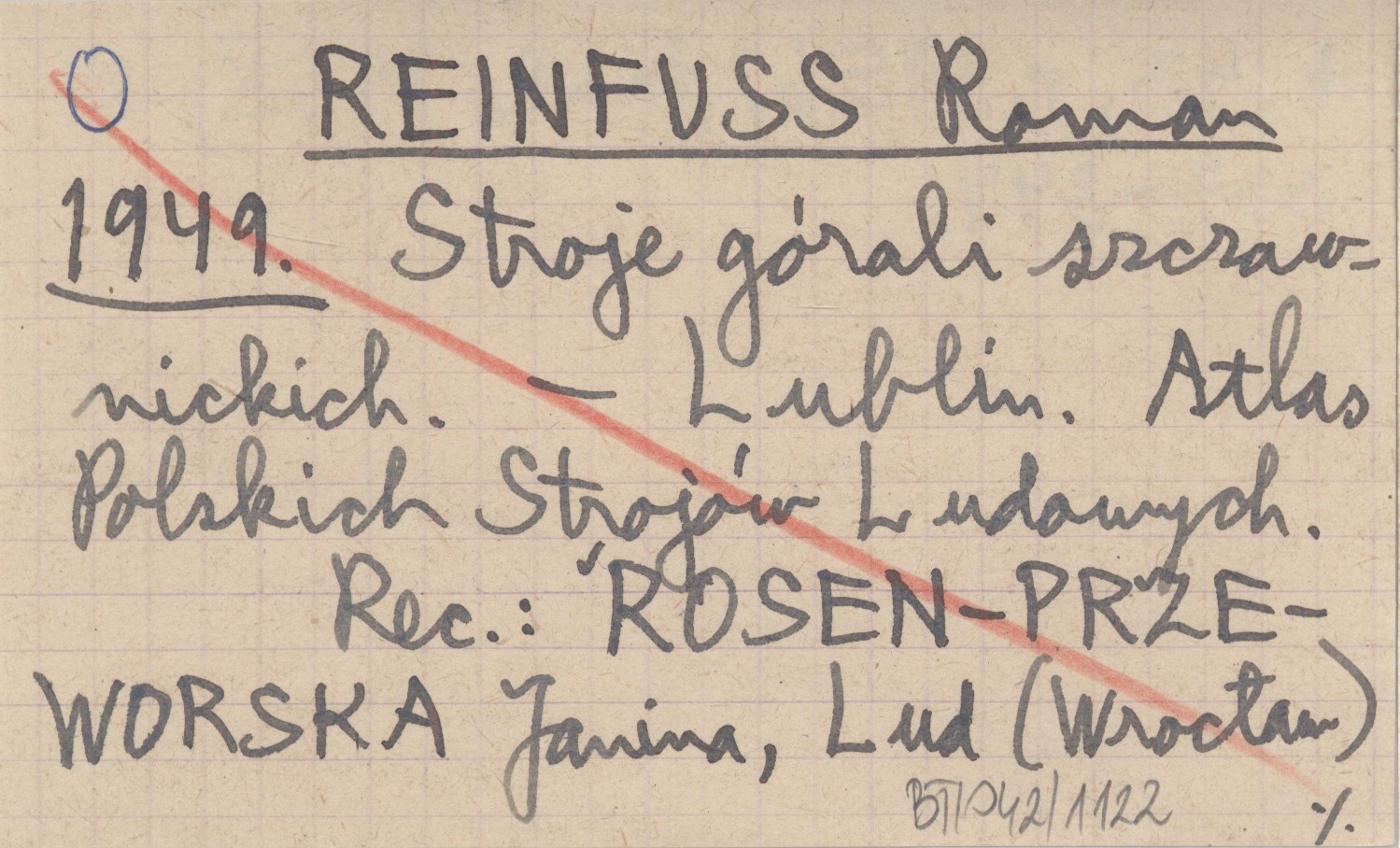 Lublin (Atlas Polskich Strojów Ludowych, cz. V, zesz. 18) , 40 s., il., 2 k. tabl., Rés., okł. (il.), 31x22 cm. jeszcze jedna k. tabl. miała być dodana później REC: ROSEN-PRZEWORSKA Janina, Lud (Wrocław) t. 43, r. 1956, druk 1958: 337-344