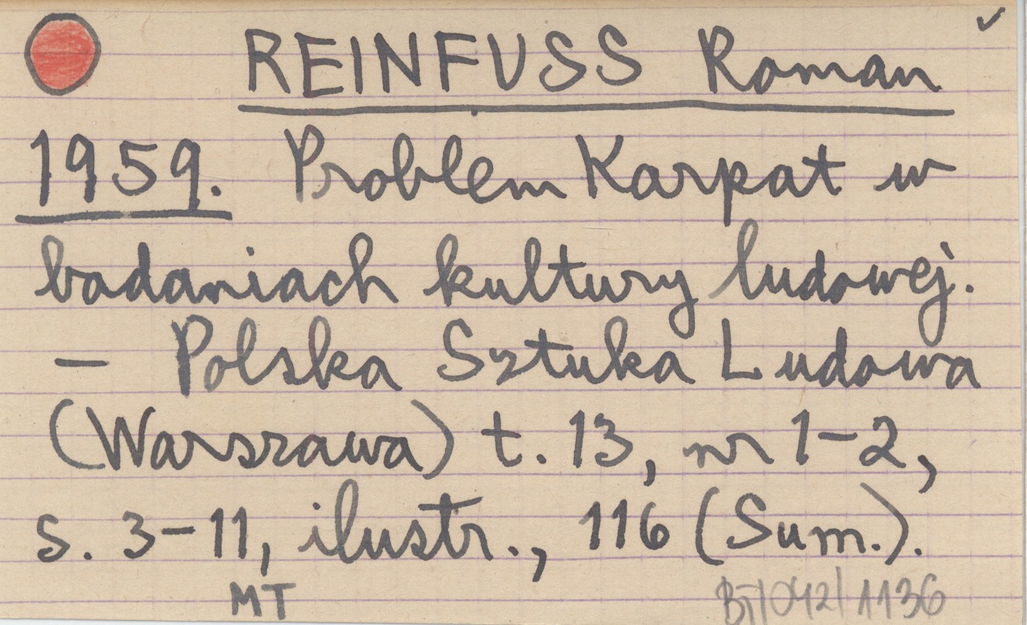REINFUSS Roman 1959 Problem Karpat w badaniach kultury ludowej.