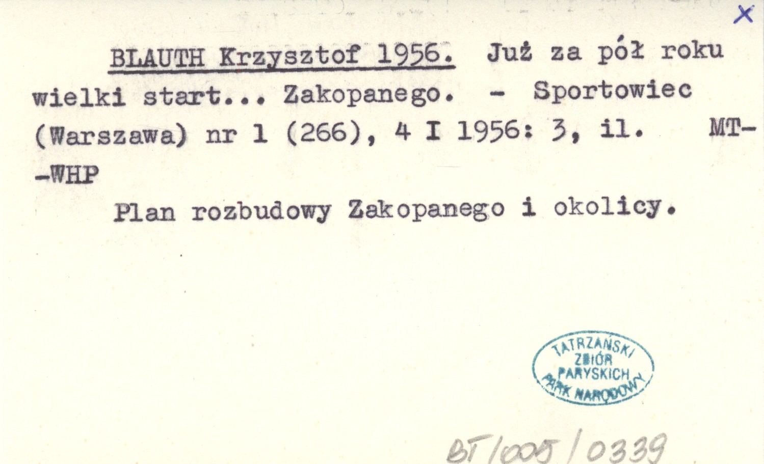 BLAUTH Krzysztof 1956 Już za pół roku wielki start... Zakopanego.