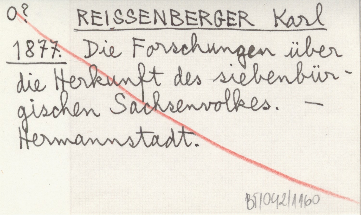 REISSENBERGER Karl 1877 Die Forschungen über die Herkunft des siebenbürgischen Sachsenvolkes.