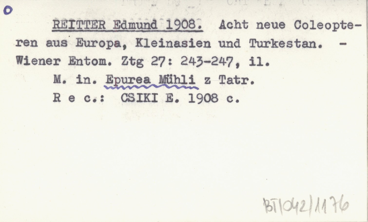 REITTER Edmund 1908 Acht neue Coleopteren aus Europa, Kleinasien und Turkestan.