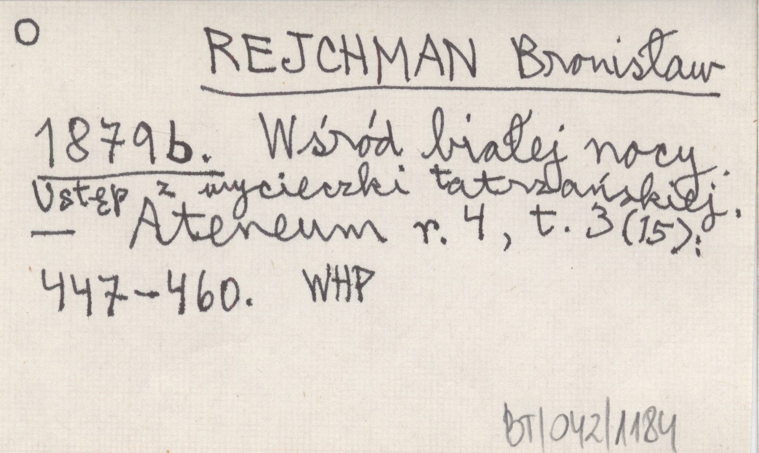 REJCHMAN Bronisław 1879 b Wśród białej nocy. Ustęp z wycieczki tatrzańskiej.