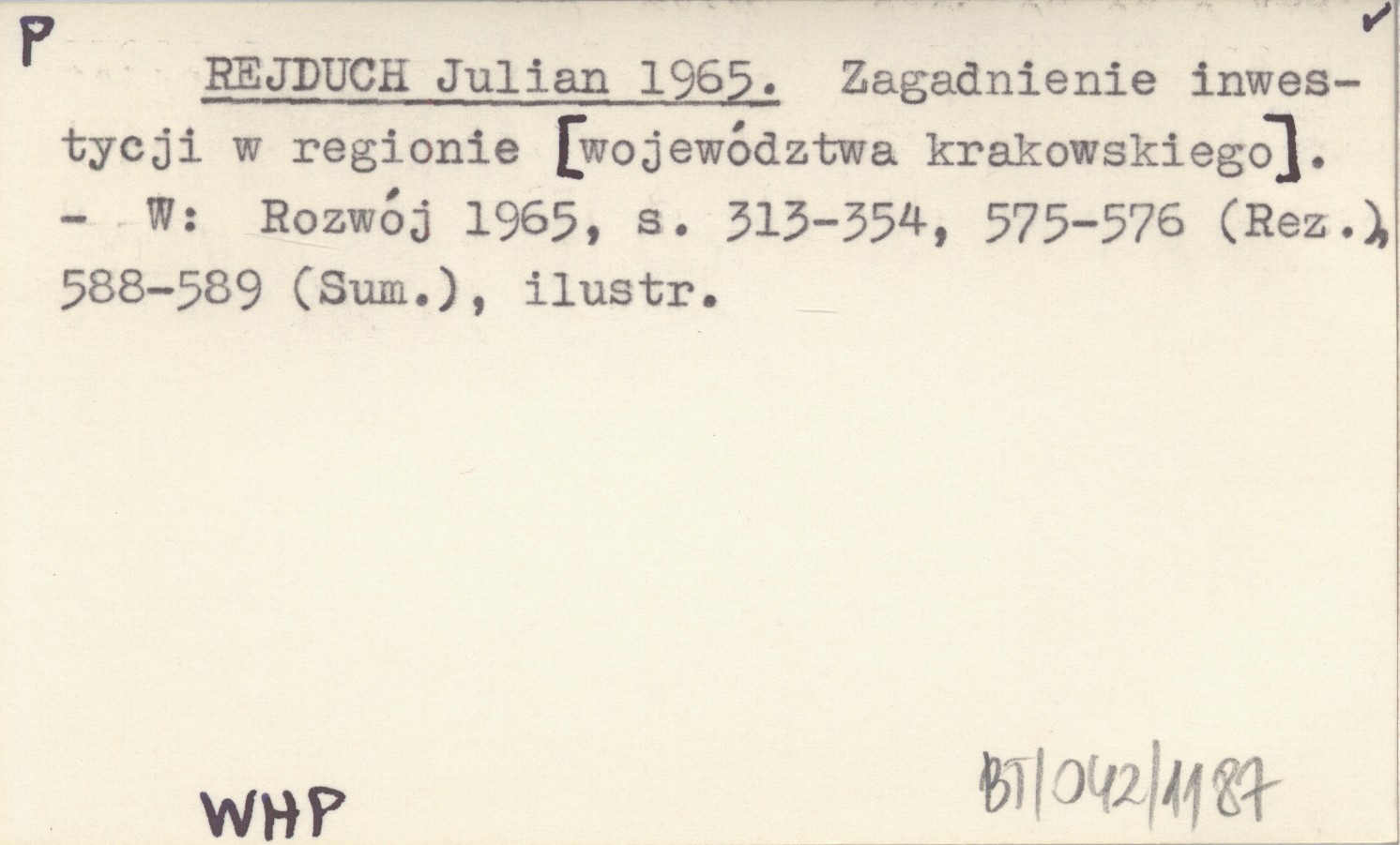 REJDUCH Julian 1965 Zagadnienie inwestycji w regionie [województwa krakowskiego].