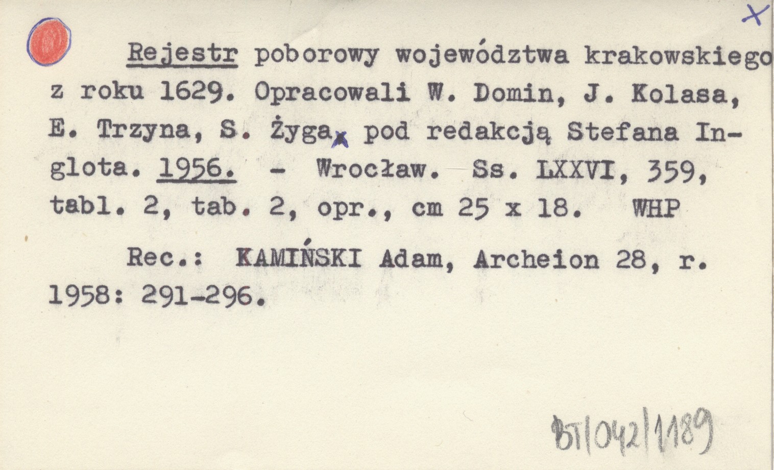 Rejestr poborowy województwa krakowskiego z roku 1629. Opracowali W. Domin, J. Kolasa, E. Trzyna, S. Żyga pod redakcją Stefana Inglota. 1956
