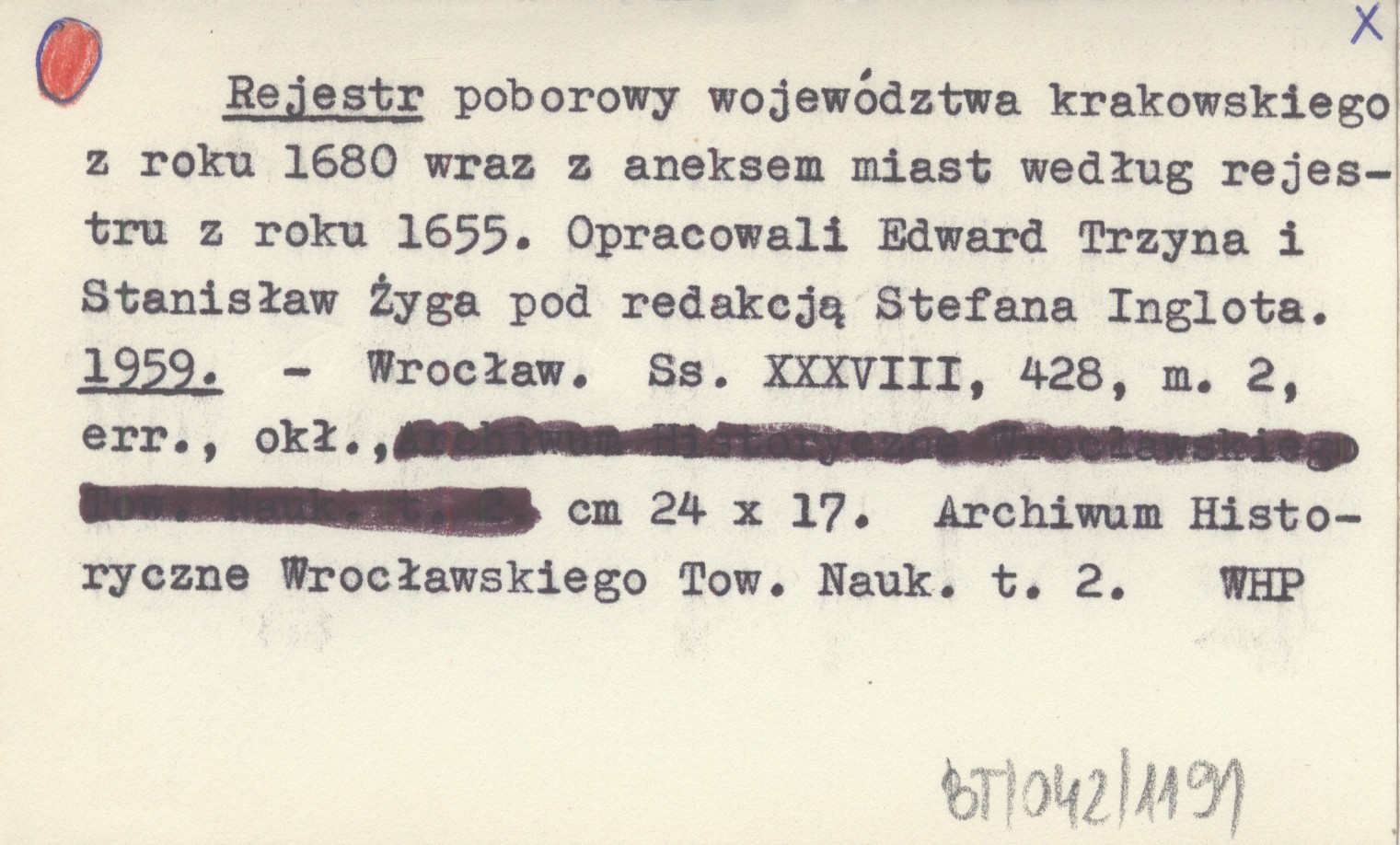 Rejestr poborowy województwa krakowskiego z roku 1680 wraz z aneksem miast według rejestru z roku 1655. Opracowali Edward Trzyna i Stanisław Żyga pod redakcją Stefana Inglota. 1959